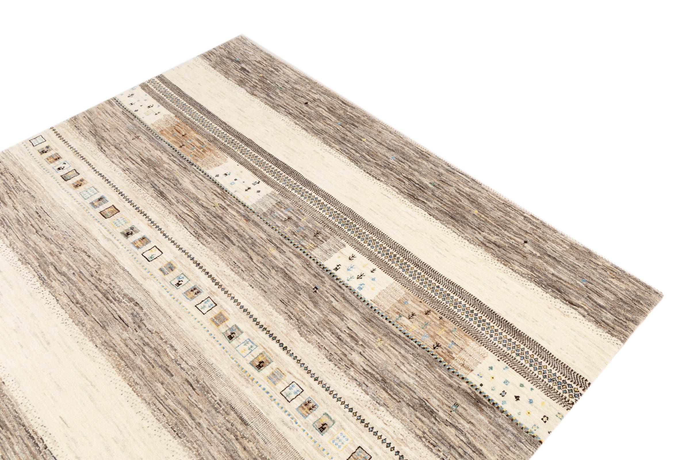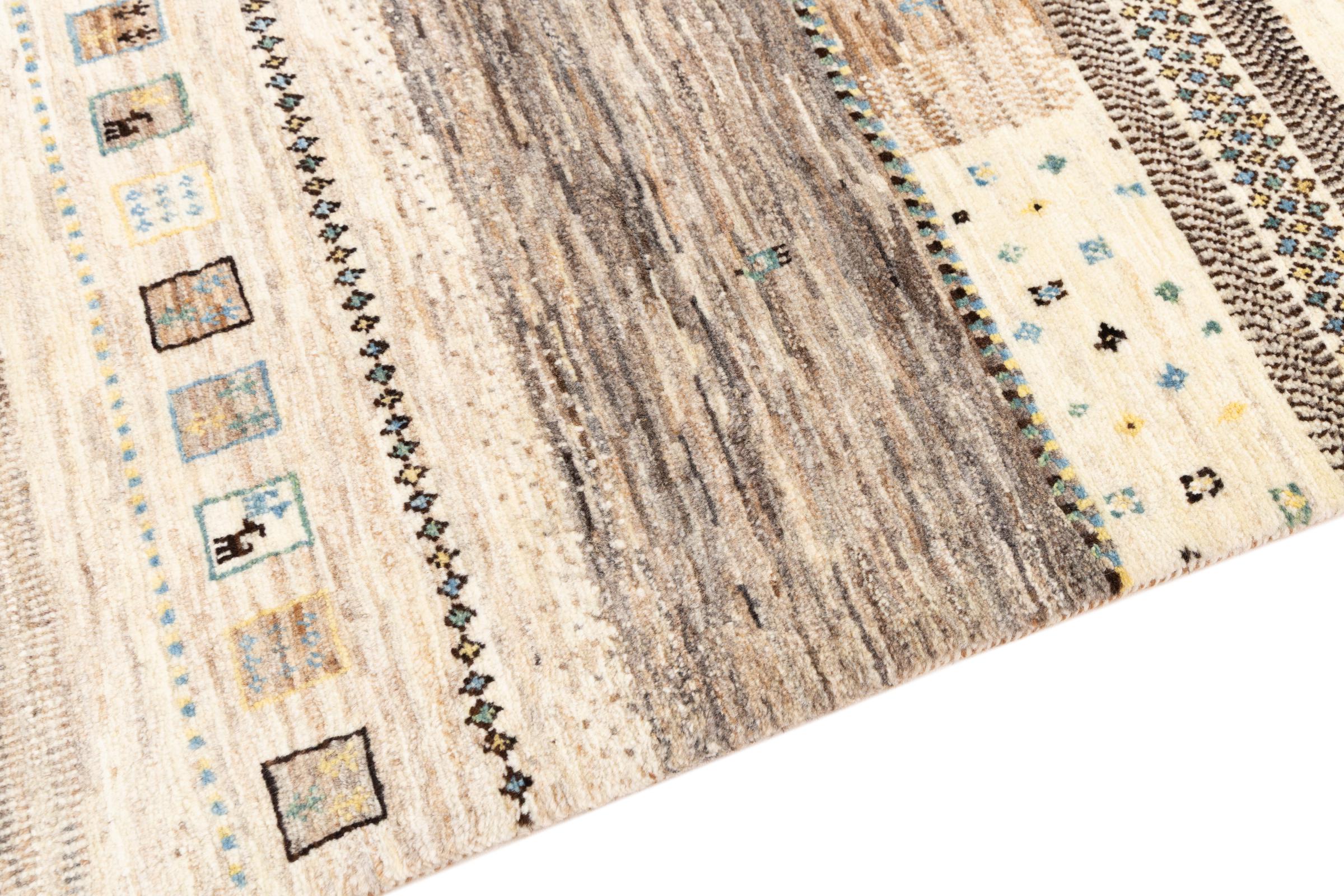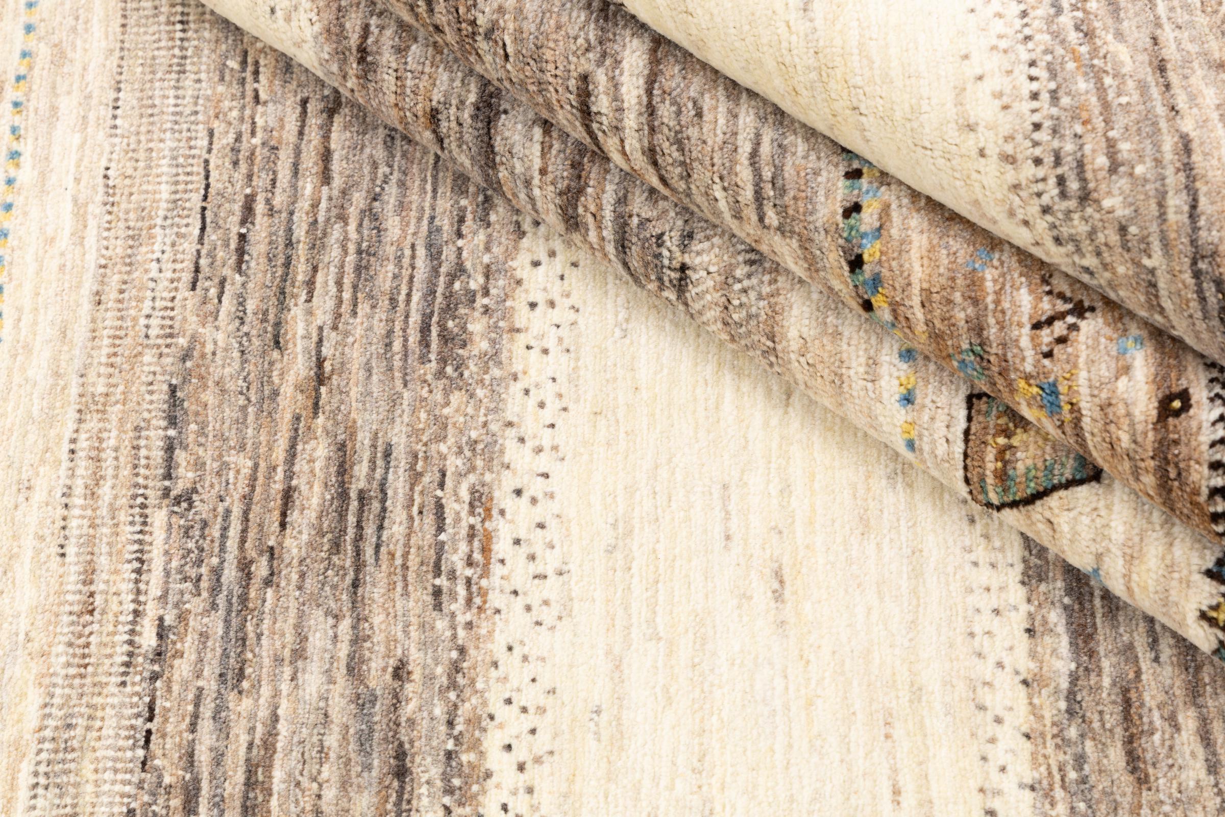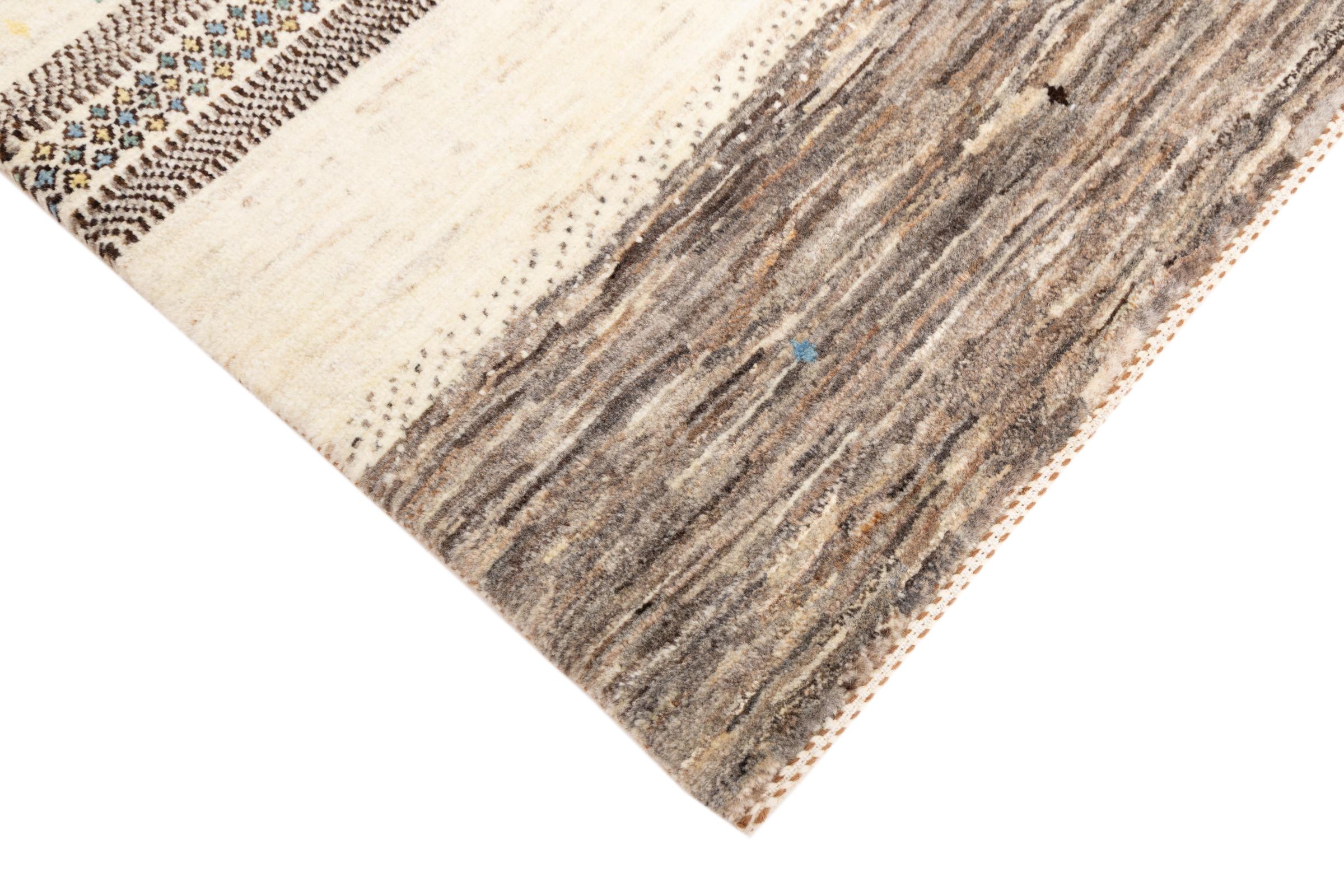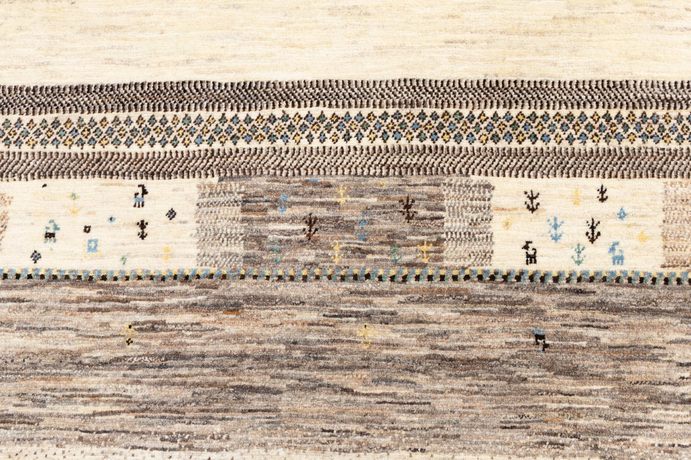 Tämä kaunis matto on Persian Gabbeh ja on yksi korkealaatuisimmista Gabbeh-matoista. Iranissa nomadit tai puoli-nomadit solmittavat mattoja perinteisillä käsityöillä. Yksinkertaiset motiivit ja kuviot ovat pääosin inspiroineet paimentolaisten välittömästä ympäristöstä. Esimerkiksi kameleita, puita tai pensaita löytyy perinteisistä matoista. Persialaiset Gabbeh-matot on valmistettu paikallisten lammaslaumojen villasta. Siksi villaa kehrätään useimmiten käsin. Jokainen näistä itämaisista matoista edustaa vuosisatojen vanhan kulttuurin ainutlaatuista luonnetta.