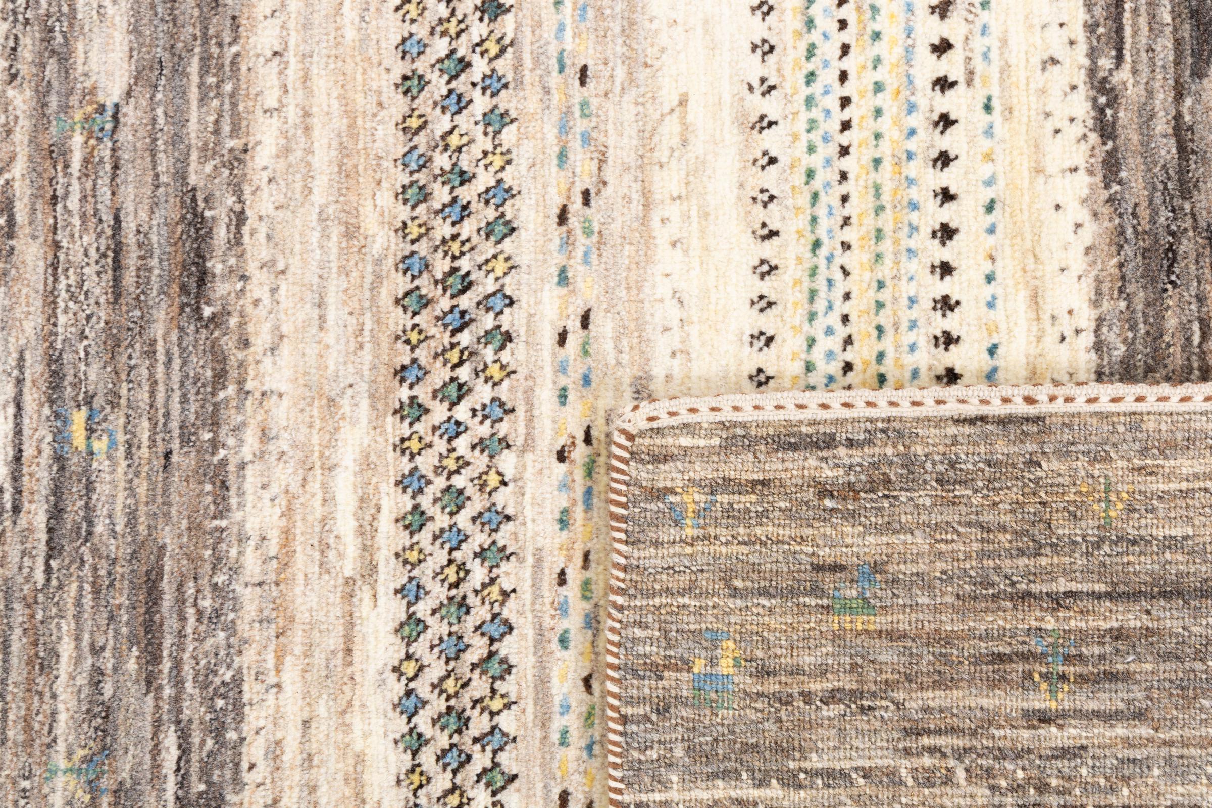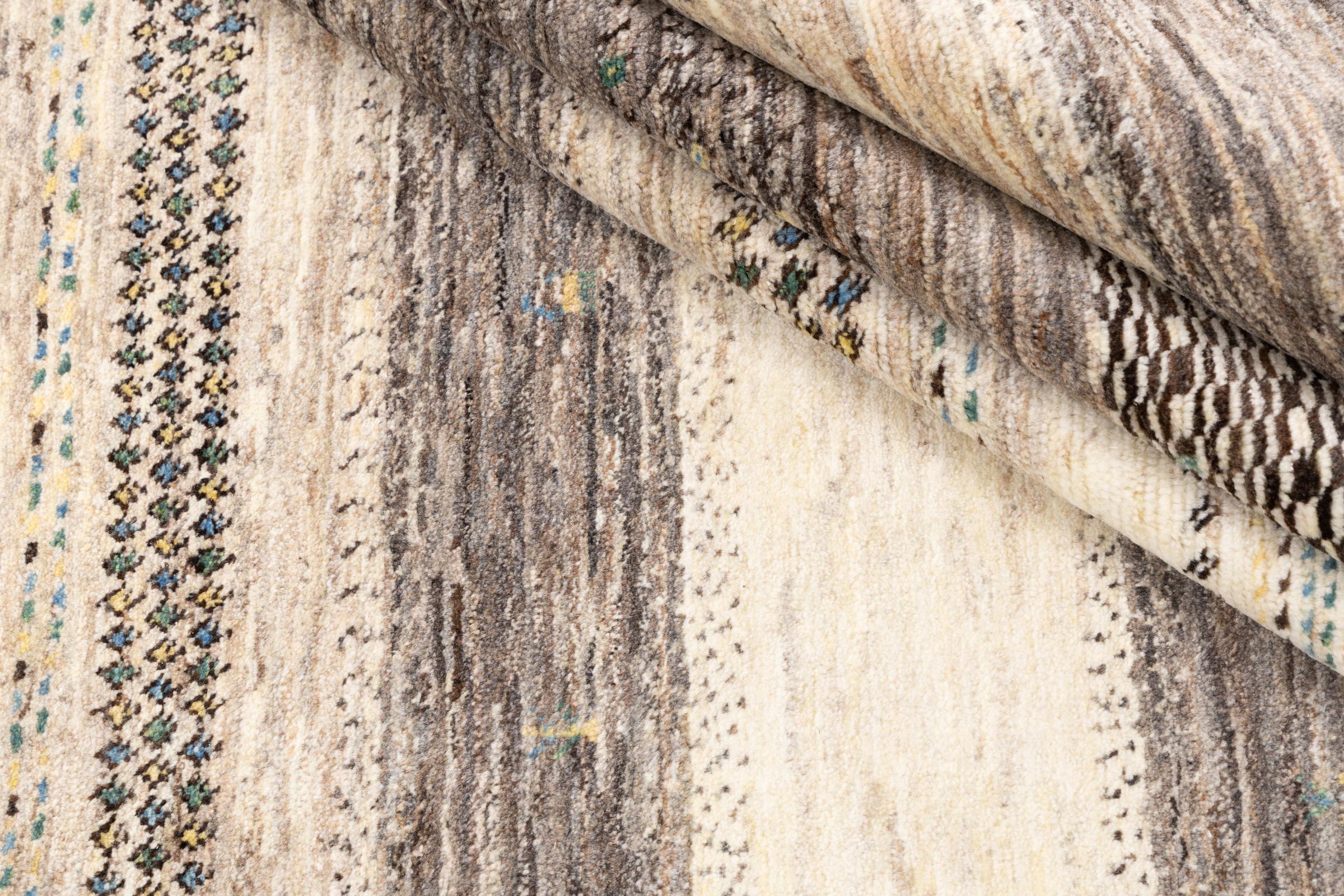 Tämä kaunis matto on Persian Gabbeh ja on yksi korkealaatuisimmista Gabbeh-matoista. Iranissa nomadit tai puoli-nomadit solmittavat mattoja perinteisillä käsityöillä. Yksinkertaiset motiivit ja kuviot ovat pääosin inspiroineet paimentolaisten välittömästä ympäristöstä. Esimerkiksi kameleita, puita tai pensaita löytyy perinteisistä matoista. Persialaiset Gabbeh-matot on valmistettu paikallisten lammaslaumojen villasta. Siksi villaa kehrätään useimmiten käsin. Jokainen näistä itämaisista matoista edustaa vuosisatojen vanhan kulttuurin ainutlaatuista luonnetta.