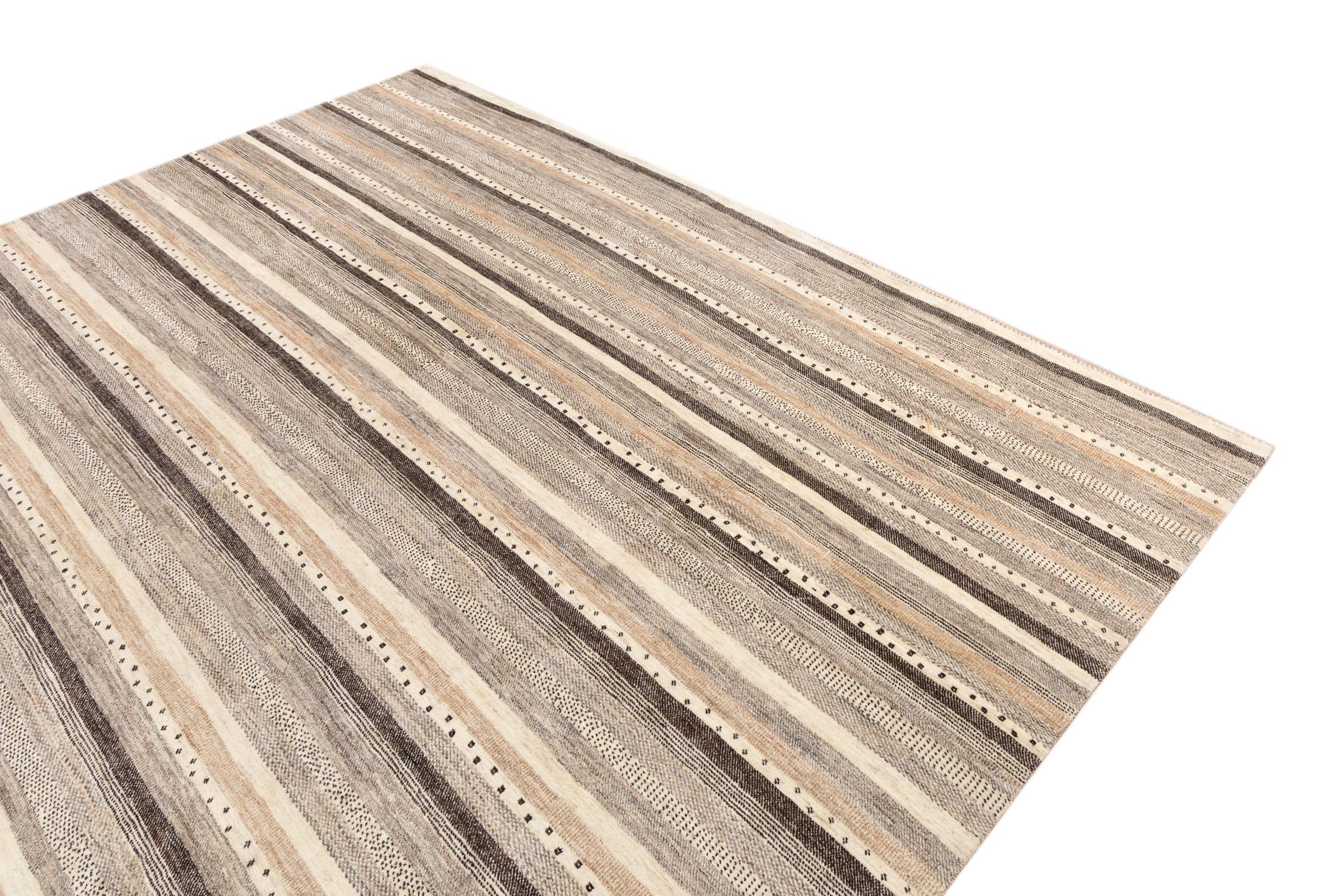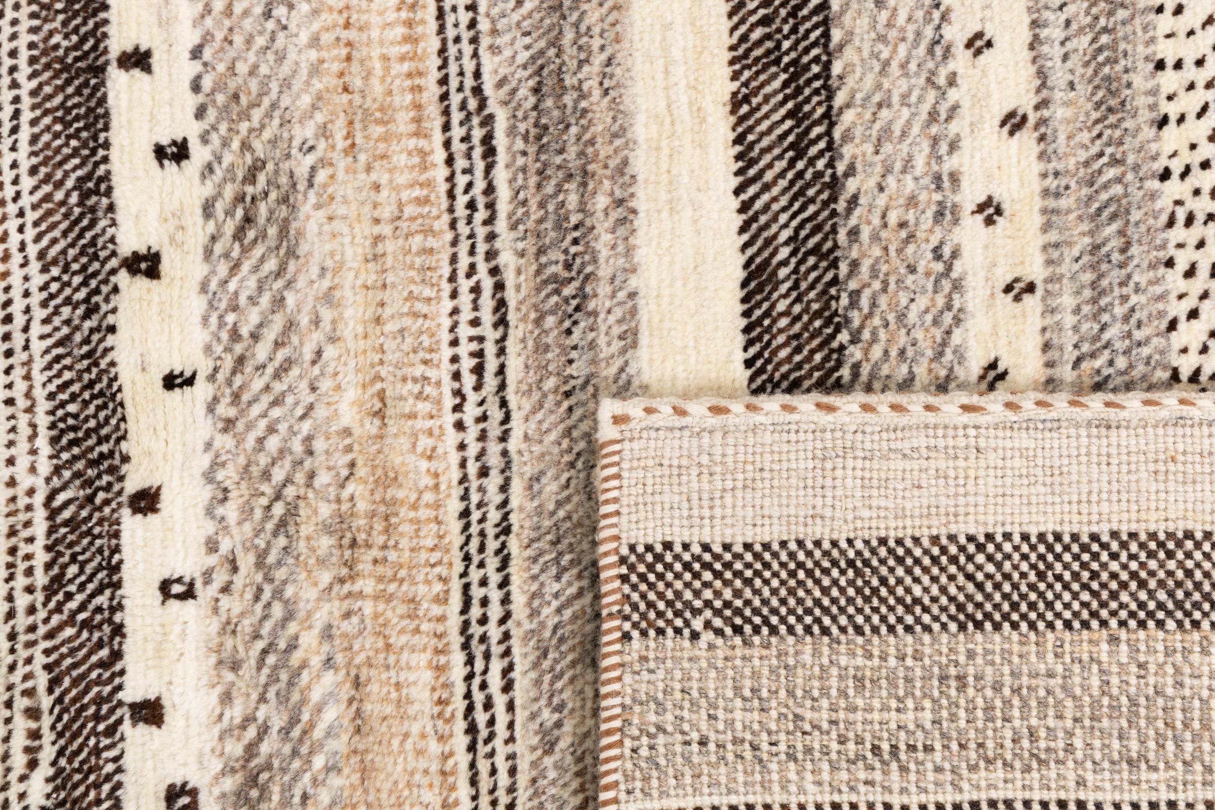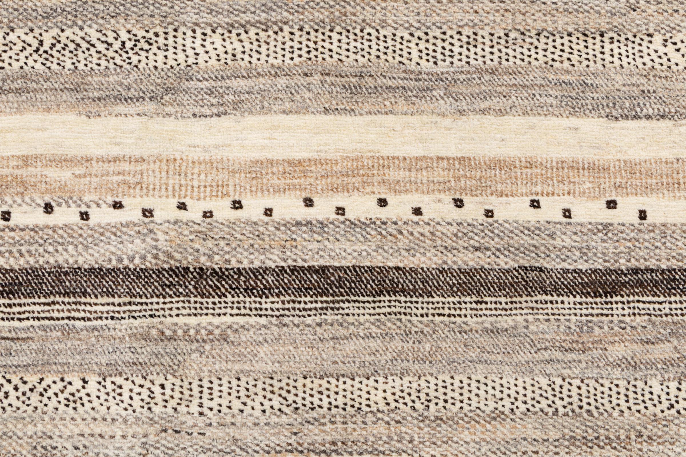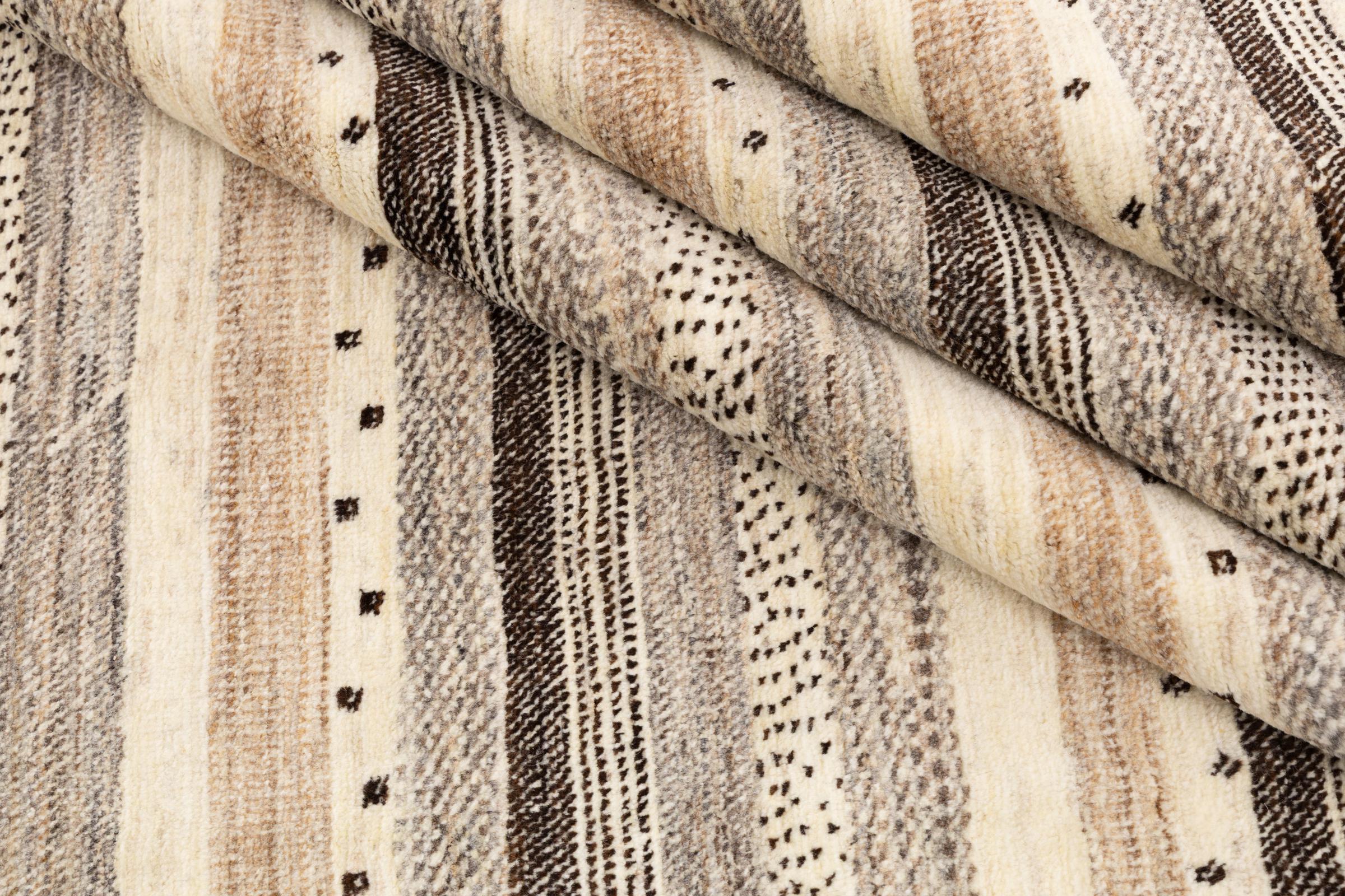 Tämä kaunis matto on Persian Gabbeh ja on yksi korkealaatuisimmista Gabbeh-matoista. Iranissa nomadit tai puoli-nomadit solmittavat mattoja perinteisillä käsityöillä. Yksinkertaiset motiivit ja kuviot ovat pääosin inspiroineet paimentolaisten välittömästä ympäristöstä. Esimerkiksi kameleita, puita tai pensaita löytyy perinteisistä matoista. Persialaiset Gabbeh-matot on valmistettu paikallisten lammaslaumojen villasta. Siksi villaa kehrätään useimmiten käsin. Jokainen näistä itämaisista matoista edustaa vuosisatojen vanhan kulttuurin ainutlaatuista luonnetta.