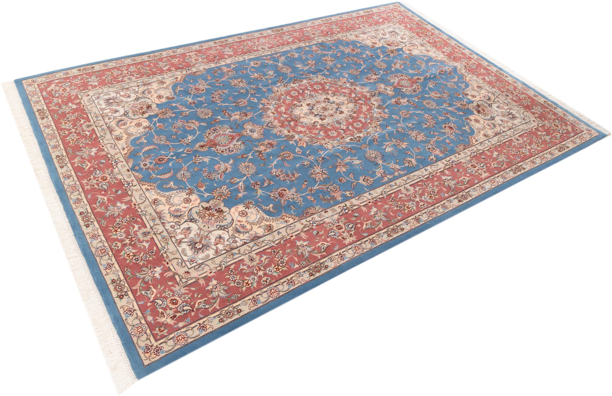 Maton nro.: 277520096 Koko: 303x202 cm Paksuus: n. 8 mm Solmua: 450 000 - 500 000 / m² Työstäminen: Solmittu käsin Nukka: Käsinkehrätty villa Loimi: Puuvilla Alkuperä: Persia / Iran Ikä: uusi Paino: n. 18 kg Tunnetaan myös nimellä Tabriz, Tabris, Täbris, Tebriz, Tebris, 40Raj, 50Raj Készleten: Uniikki - Csak 1 van készleten