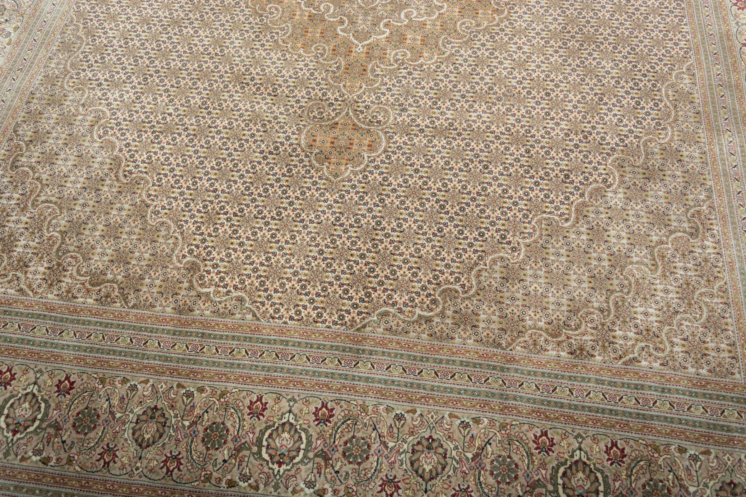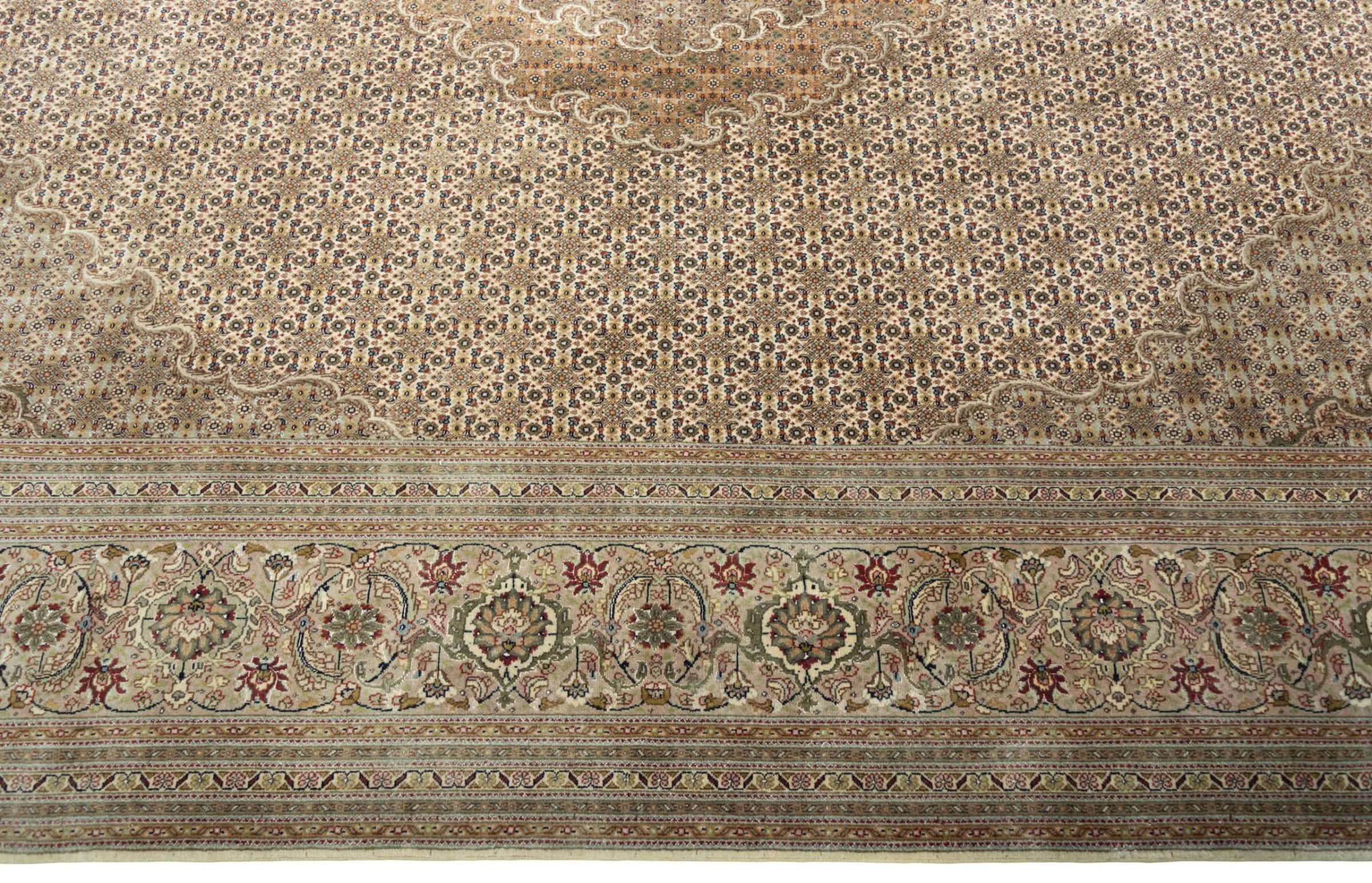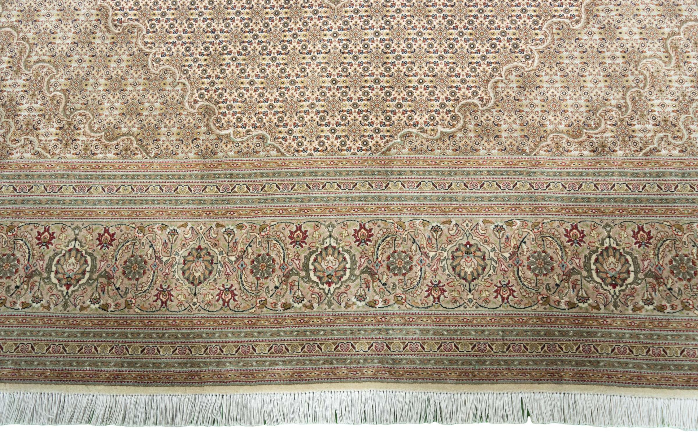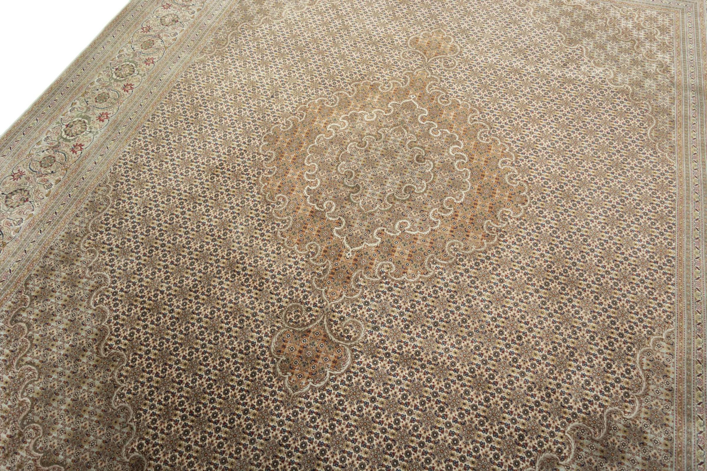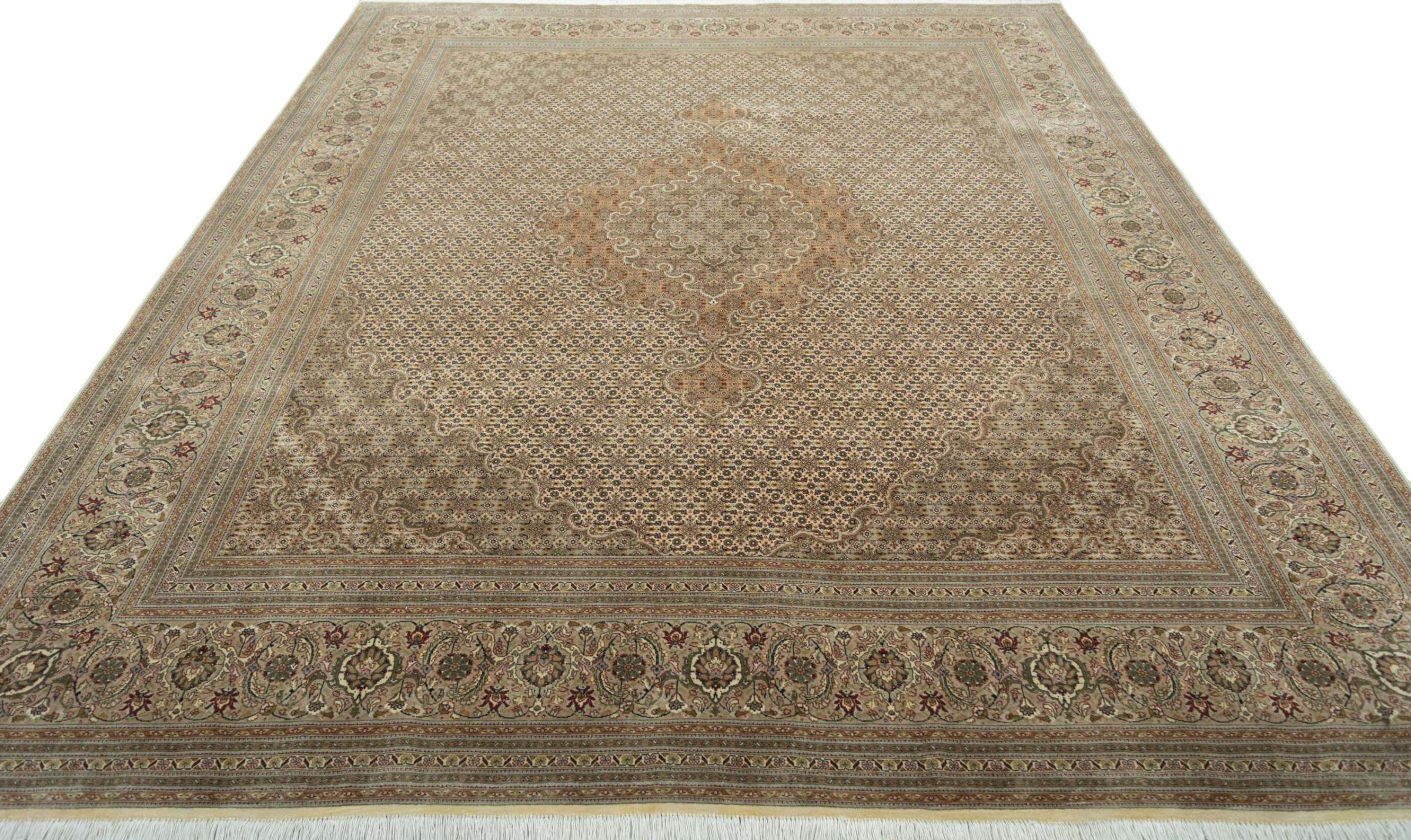 Maton nro.: 310548004109705 Koko: 311x248 cm Paksuus: n. 8 mm Solmua: 450 000 - 500 000 / m² Työstäminen: Solmittu käsin Nukka: Korkkivilla silkillä Loimi: Puuvilla Alkuperä: Persia / Iran Ikä: uusi Paino: n. 23 kg Tunnetaan myös nimellä Tabriz, Tabris, Täbris, Tebriz, Tebris, 40Raj, 50Raj Készleten: Uniikki - Csak 1 van készleten