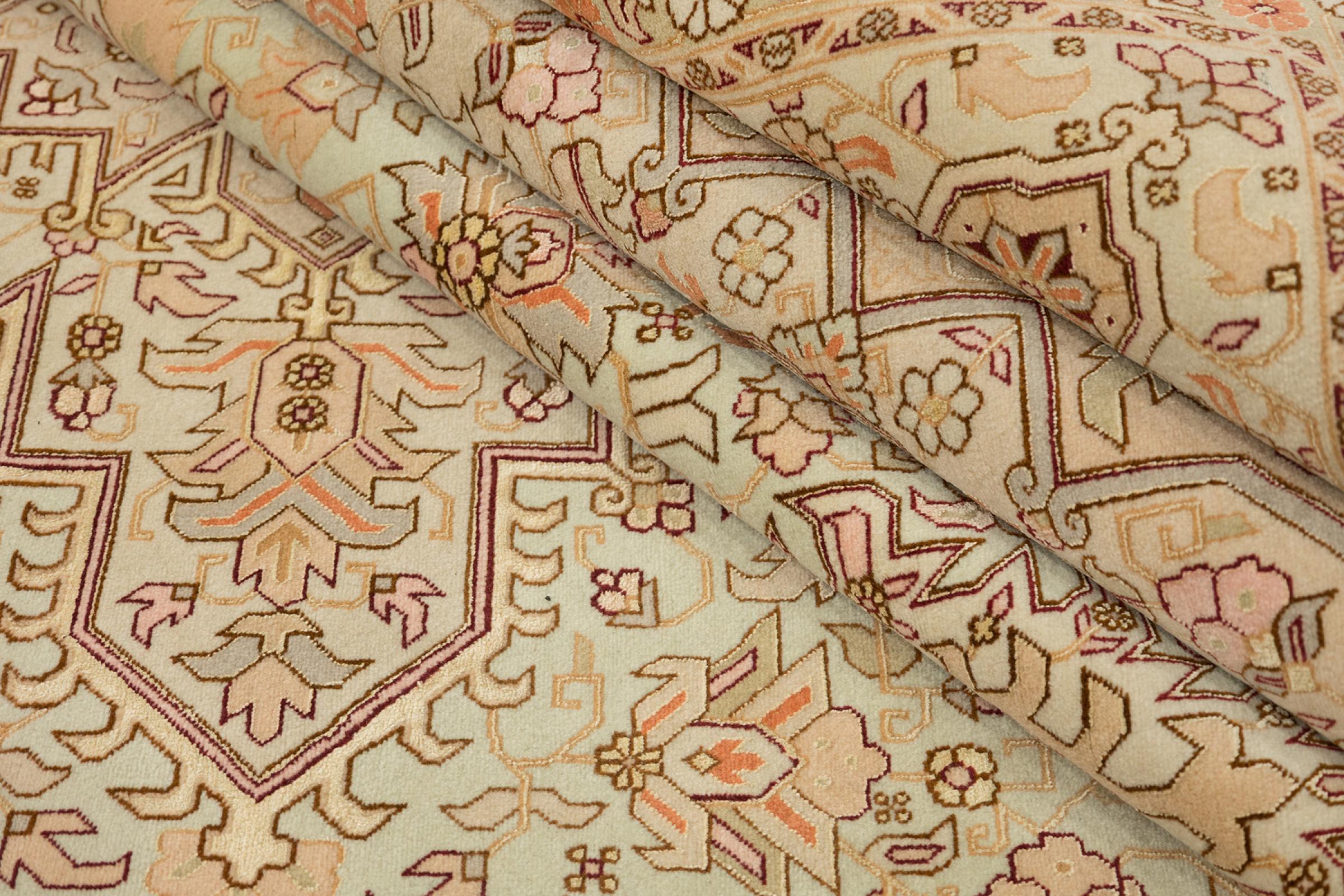 Maton nro.: 316513006898697 Koko: 346x246 cm Paksuus: n. 8 mm Solmua: 440 000 - 490 000 / m² Työstäminen: Solmittu käsin Nukka: Villa silkillä Loimi: Puuvilla Alkuperä: Persia / Iran Ikä: uusi Paino: n. 26 kg Tunnetaan myös nimellä Tabriz, Tabris, Täbris, Tebriz, Tebris, 40Raj, 50Raj Készleten: Uniikki - Csak 1 van készleten