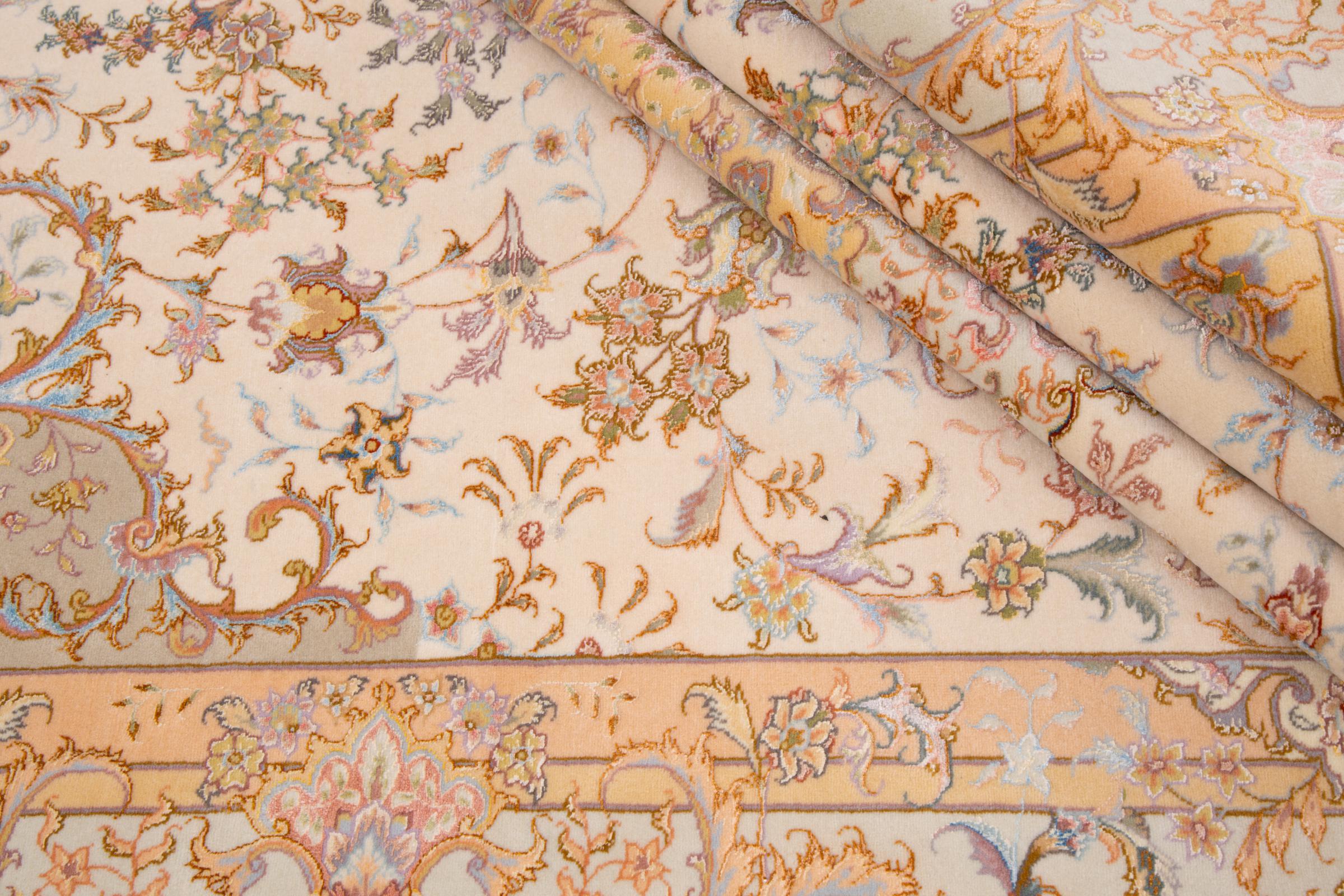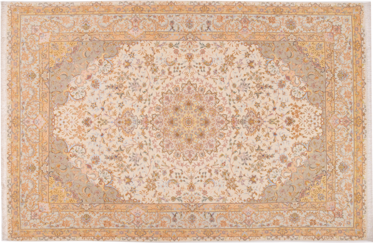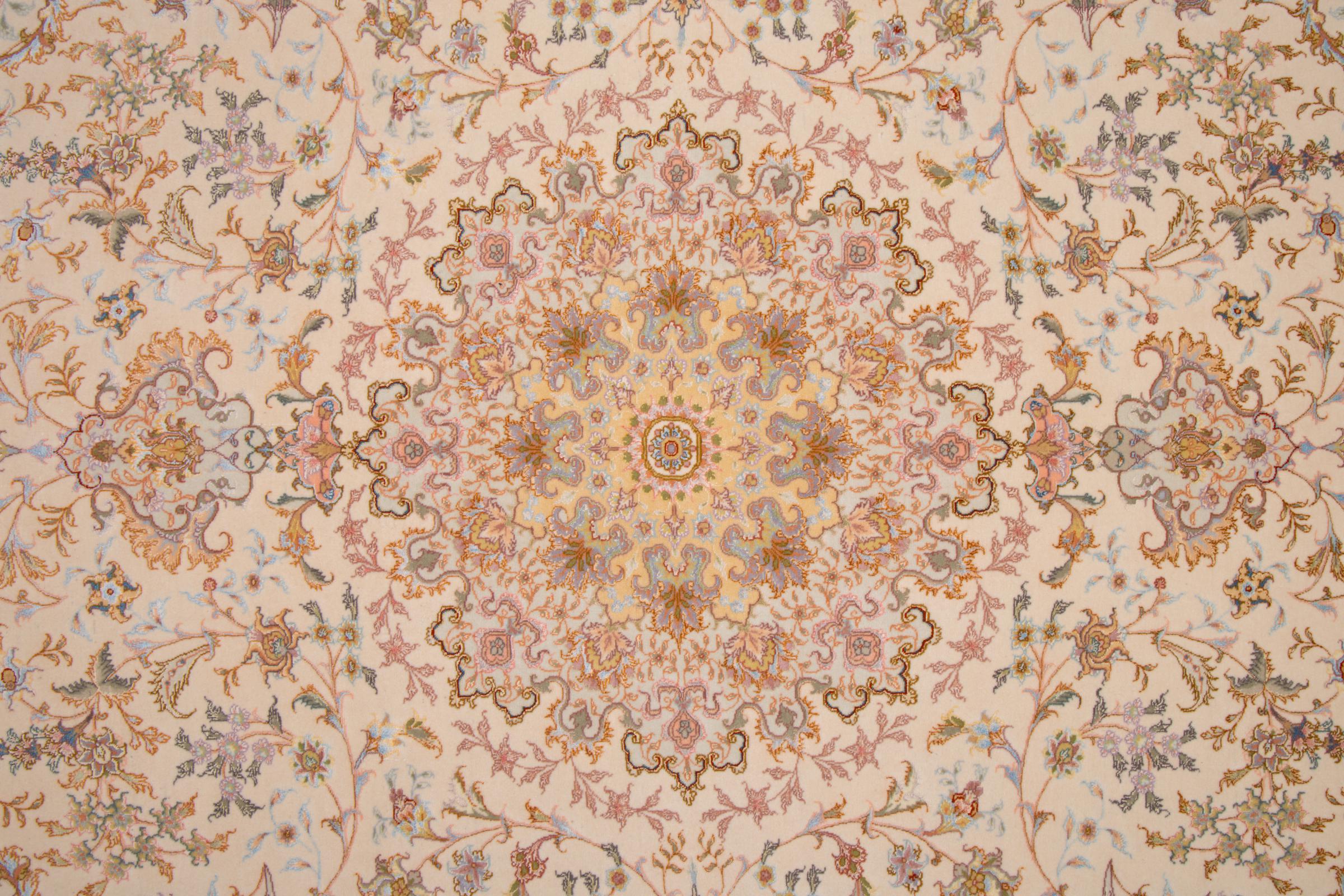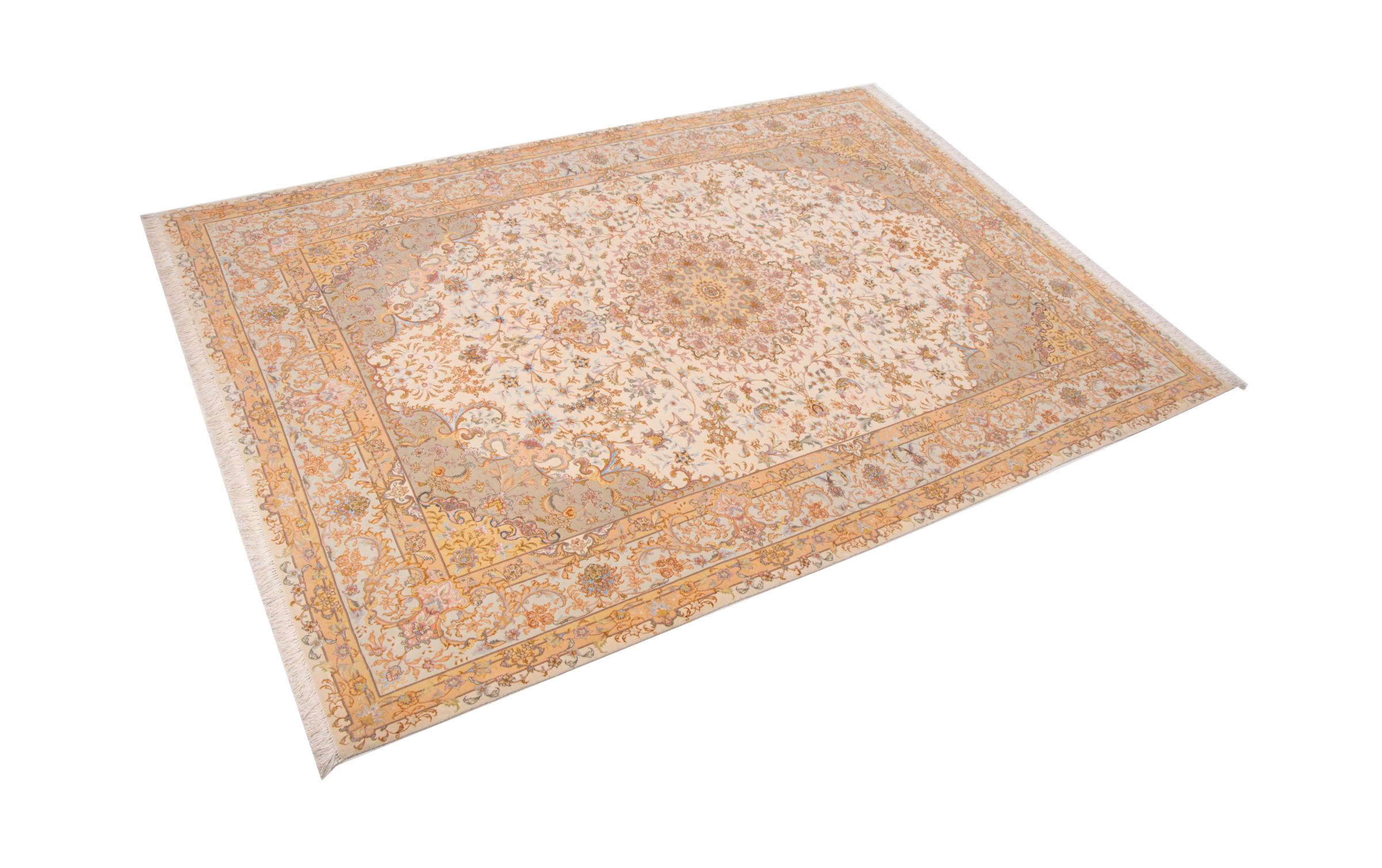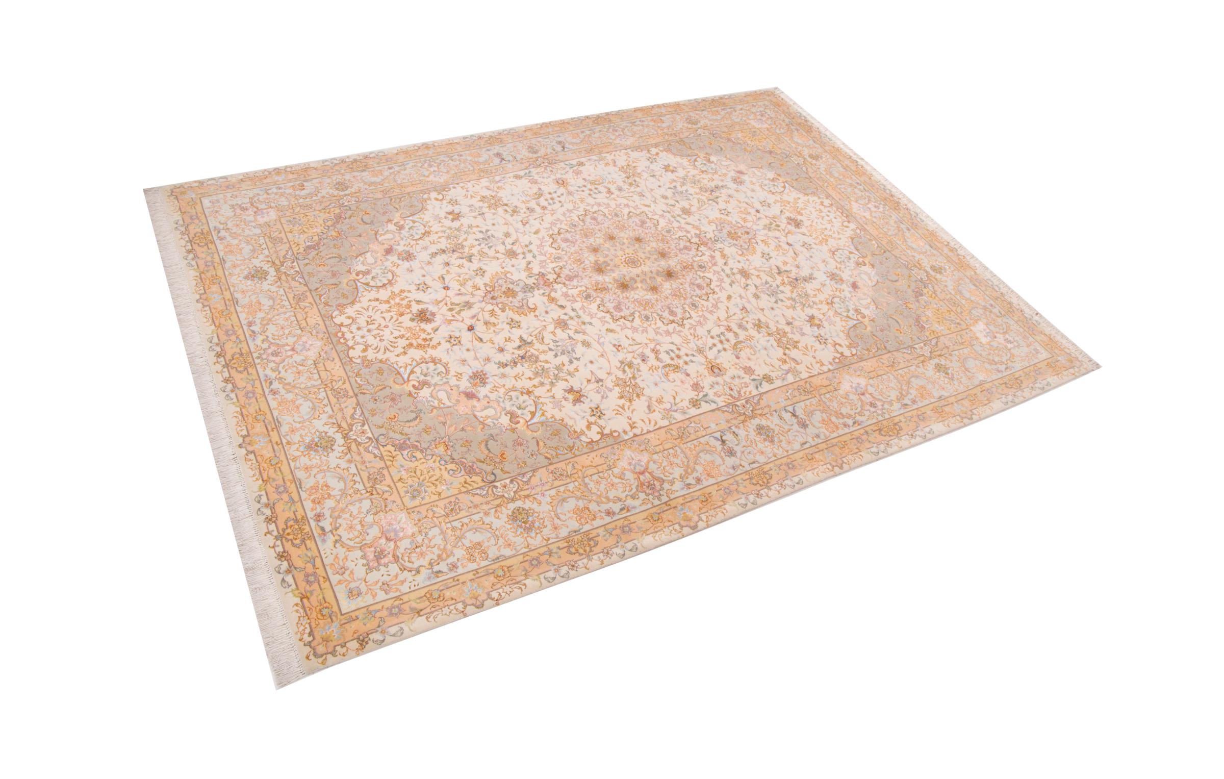 Maton nro.: 293143003650866 Koko: 308x201 cm Paksuus: n. 6 mm Solmua: 640 000 / m² Työstäminen: Solmittu käsin Nukka: Villa silkillä Loimi: Silkki Alkuperä: Persia / Iran Ikä: uusi Paino: n. 19 kg Tunnetaan myös nimellä Tabris, Tabriz, Tebris, Tebriz, Täbris, 60Raj Készleten: Uniikki - Csak 1 van készleten