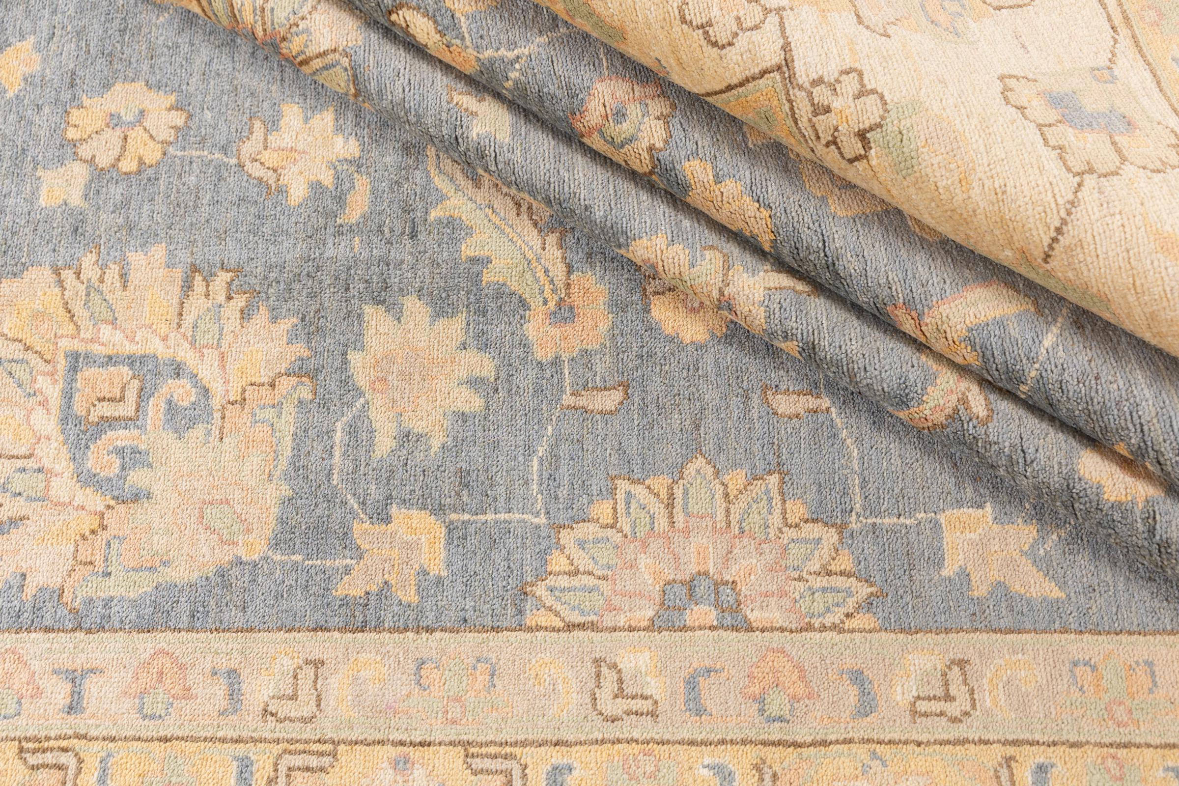 Käsinsolminnaltaan on tämä Ziegler Farahan arvokkaasta villasta Pakistanissa tehty. Erityiset käsittelymenetelmät antavat kauniin, modernin vintage-patinan sille, mikä vaikuttaa kunnollisine väreineen hyvin modernilta.