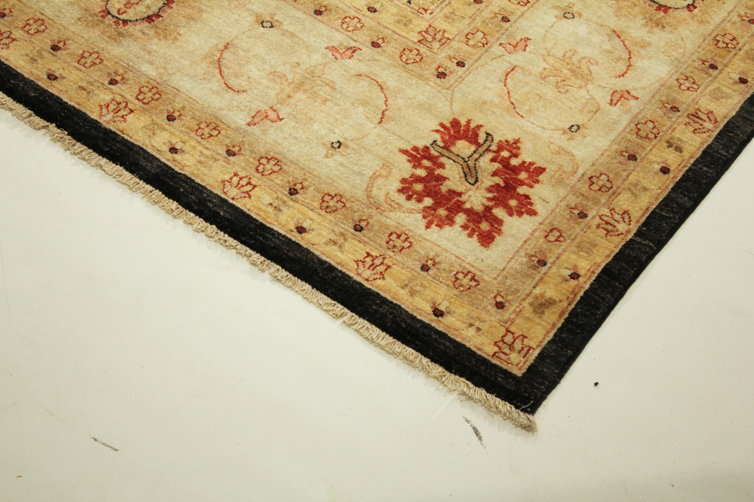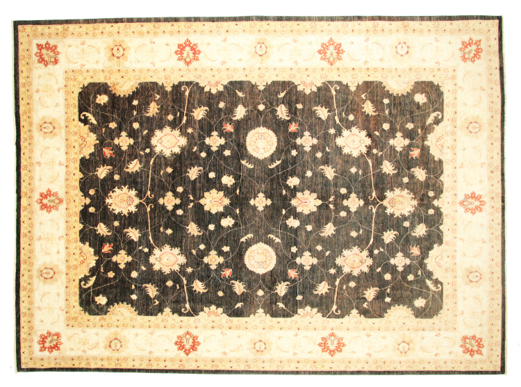 Käsinsolminnaltaan on tämä Ziegler Farahan arvokkaasta villasta Pakistanissa tehty. Erityiset käsittelymenetelmät antavat kauniin, modernin vintage-patinan sille, mikä vaikuttaa kunnollisine väreineen hyvin modernilta.
