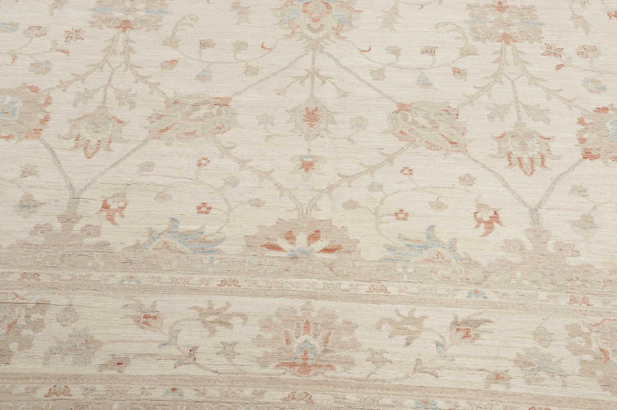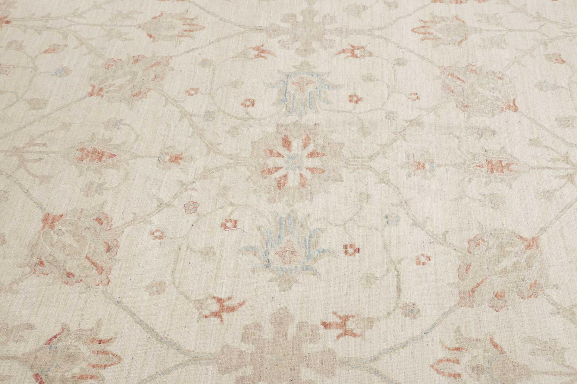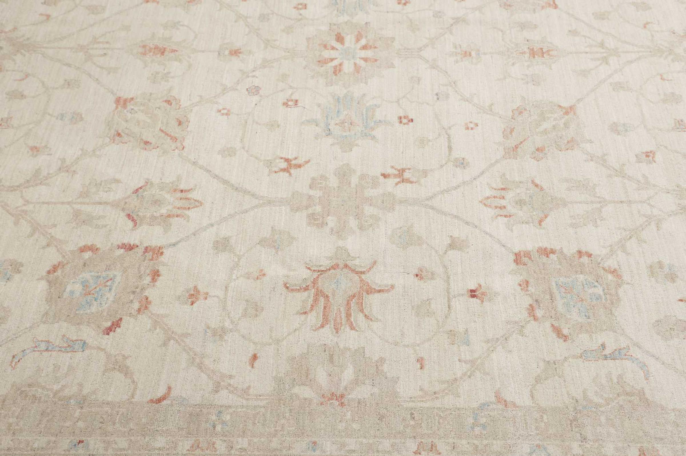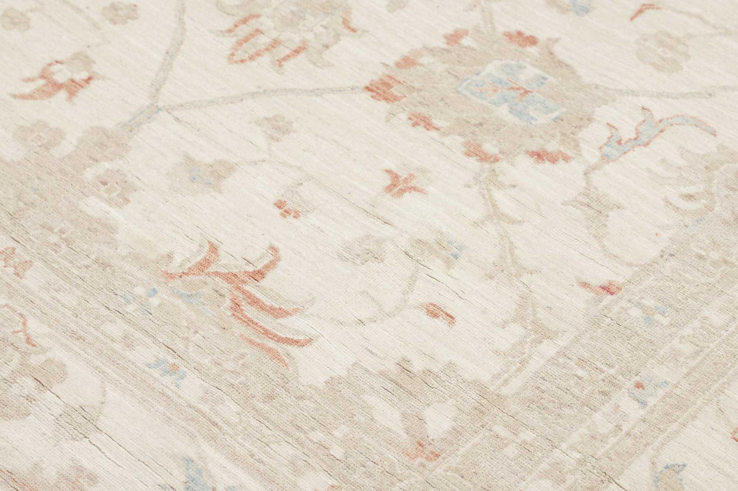 Käsinsolminnaltaan on tämä Ziegler Farahan arvokkaasta villasta Pakistanissa tehty. Erityiset käsittelymenetelmät antavat kauniin, modernin vintage-patinan sille, mikä vaikuttaa kunnollisine väreineen hyvin modernilta.